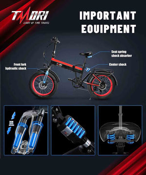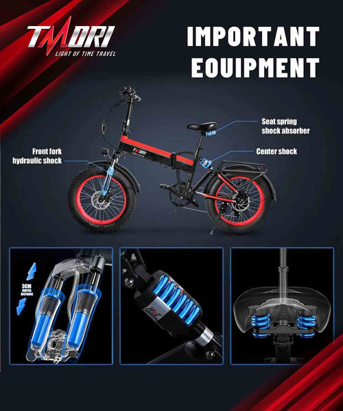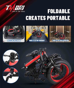 TMORI Electric Bike for Adults 750W 48V Foldable Electric Bicycle with Shimano 7-Speed Gear 20" Fat Tire E Bike Electric Beach Mountain Bike for Adults