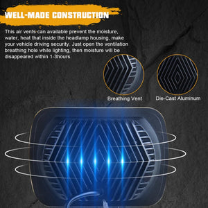 • 【IP67 Waterproof Rate】The waterproof rating is IP67, the sealed lens and aluminum alloy house will not fog or enter water even in rainy or snowy days, giving you a clear visibility, and keeping your safe driving in any weather