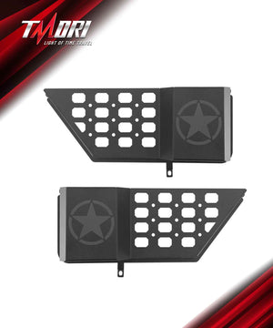 - Maximize the interior space of your Jeep with these rugged metal storage boxes. Designed specifically for the rear doors, they provide a perfect place to store essential gear, from tools and recovery equipment to first-aid kits and trail snacks. This simple drop-in solution keeps your belongings organized, safe, and ready for any adventure.