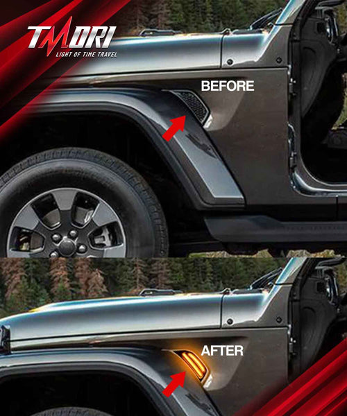 Tmori LED Fender Side Marker Lights DRL Dynamic Turn Signal Compatible with 2018-2025 Jeep Wrangler 4xe JL JLU Jeep Gladiator JT