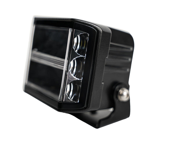 Our X Series features 3" side shooter lights with an ultra-modern design. The 70W LED side shooter light pods deliver 8,400 lumens with a 20° spot beam pattern that improves long-range lighting or a 110° flood beam pattern that improves near-range visibility. The side shooters increase the total beam angle to 140°. A die-cast aluminum housing and polycarbonate lens provide dust, water, and impact resistance. Mount the light pods to a variety of off-road vehicles using the included stainless steel mounting hardware.